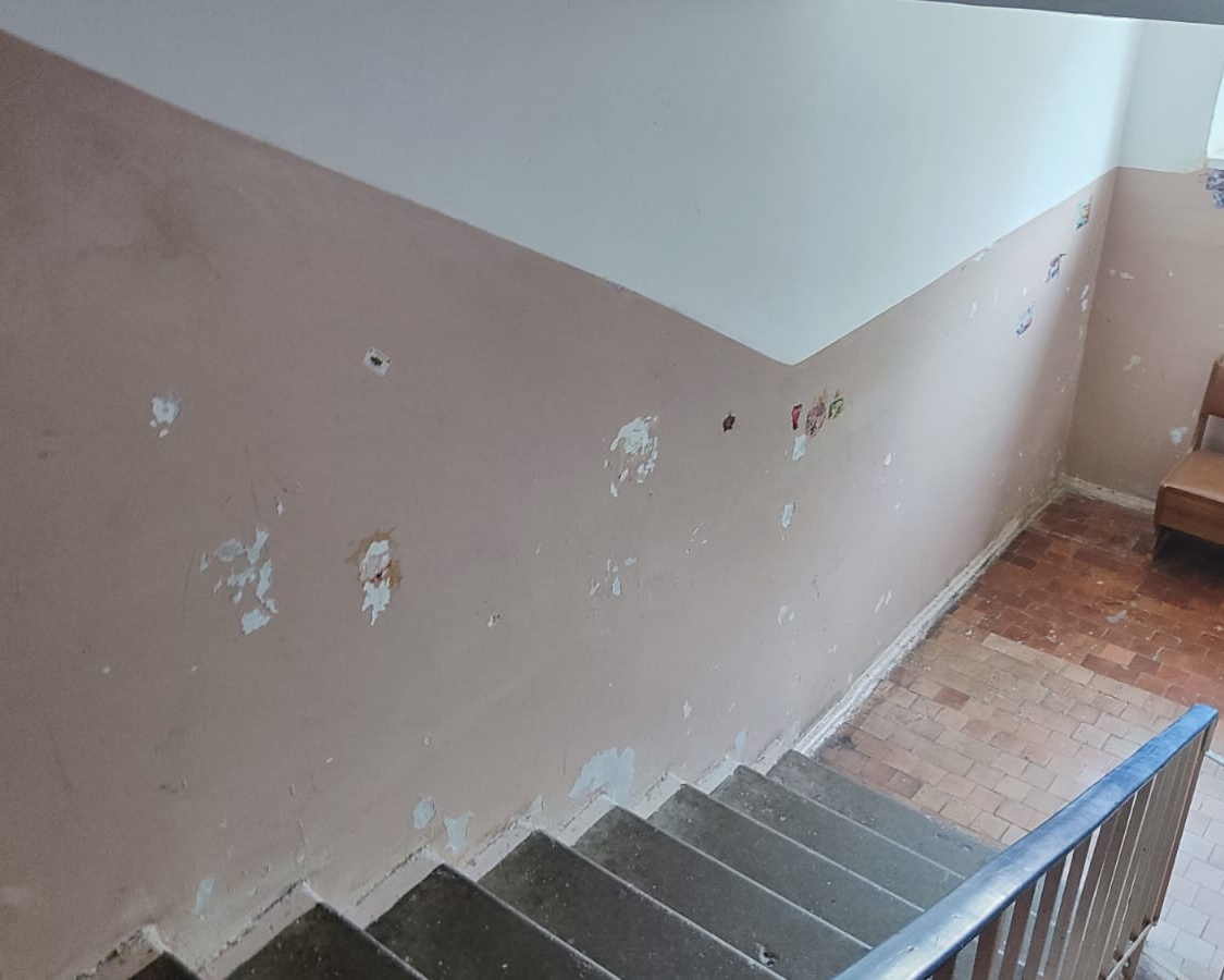 Сотрудники управляющей компании "Заря" приступили к ремонту подъездов. Сегодня зачистили стены и произвели шпатлёвку.